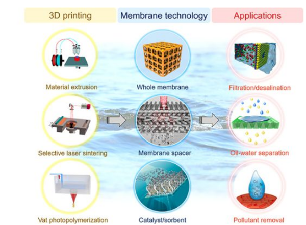 增材制造技術(shù)也非常適用于膜過濾系統(tǒng)。根據(jù)2023年一項題為《用于廢水處理的3D打印材料》的研究,3D打印技術(shù)已被用于制造先進的膜組件,包括生物傳輸體、吸附劑、催化劑,甚至整個膜。傳統(tǒng)的膜制造需要大量有毒溶劑和單體,會產(chǎn)生大量的碳排放和廢物。相比之下,3D打印無需排放溶劑,因此是一種更加環(huán)保的方法。